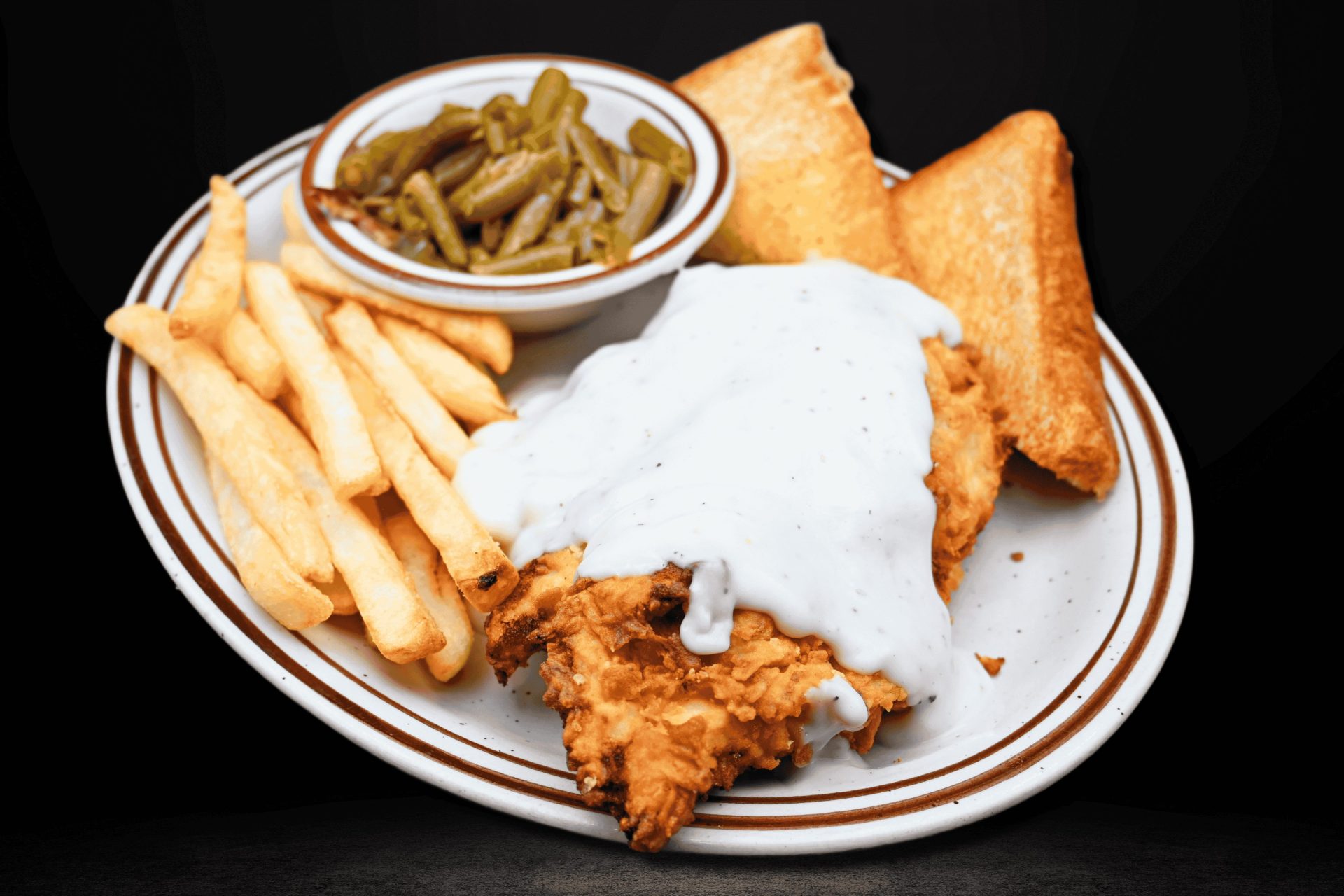 I had the chicken fried steak with mashed potatoes and green beans and it was delicious! I also had a slice of peach pie. It was delicious also!